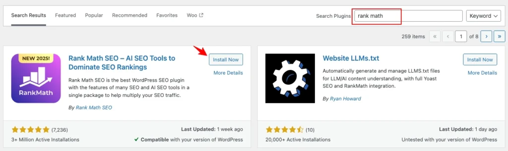 Untuk instalasi plugin Rank Math, silakan ikuti langkah-langkah berikut: